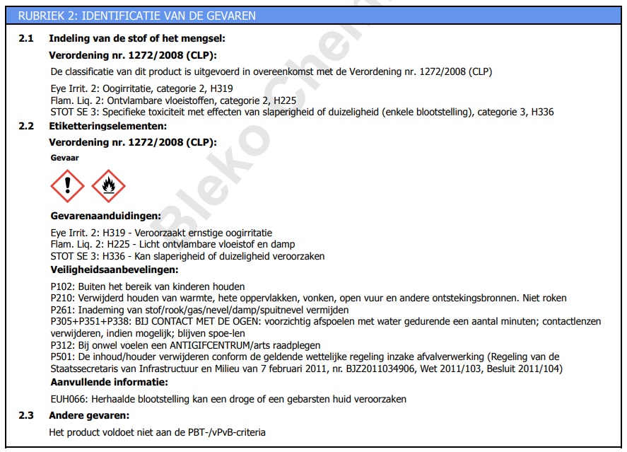 Aceton niet gebruiken op plastic, kunstzijde en chloorvezels. Aceton is brandbaar.